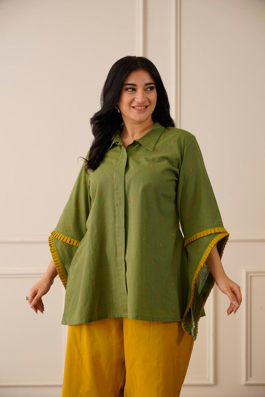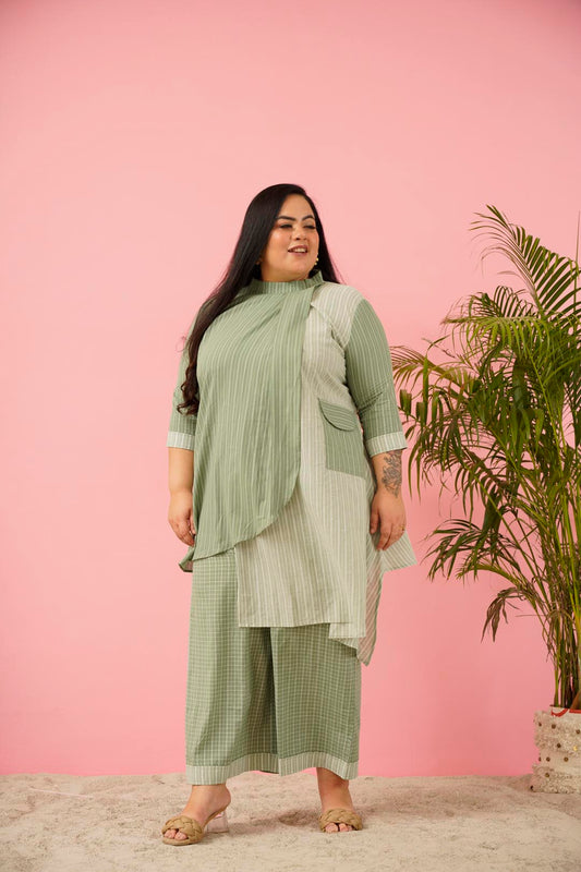 Ethereal Serenity: Pastel Green Co-ord Set with Chiffon Sleeves