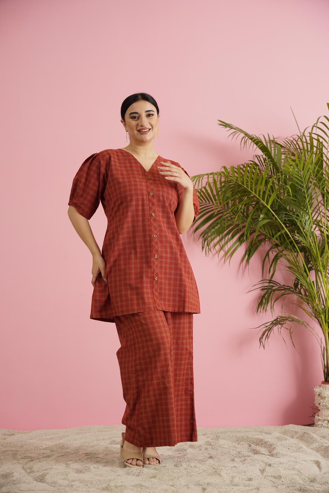 Wearing a purple co-ord set makes a bold fashion statement. Fabric - Handloom Cotton Top...