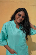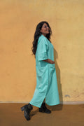 These plus-size summer dresses are made from comfortable cotton with a straight fit and 48-inch length. They feature three-quarter sleeves, front pockets on both sides, an apple-cut front, and a collar neck. Easy to care for with machine wash. Perfect for staying cool and confident all day.