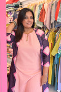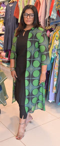 This soft cotton kurtie set is the best seller for a reason! With a keyhole neck, sleeveless kurta, and modern print shrug, you'll look chic and stylish. The pant features a convenient one side pocket and straight fit for added comfort. Plus, it comes in a variety of sizes to fit everyone!