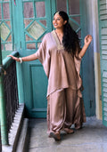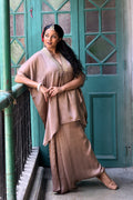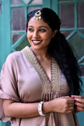 Add a touch of summer elegance to your style with this caftan-style kurta. Made from soft organza fabric, its zari work on the neckline adds a modern twist to the traditional ethnic design. Perfect for all sizes, this kurta comes with a stylish bottom for a unique look.
